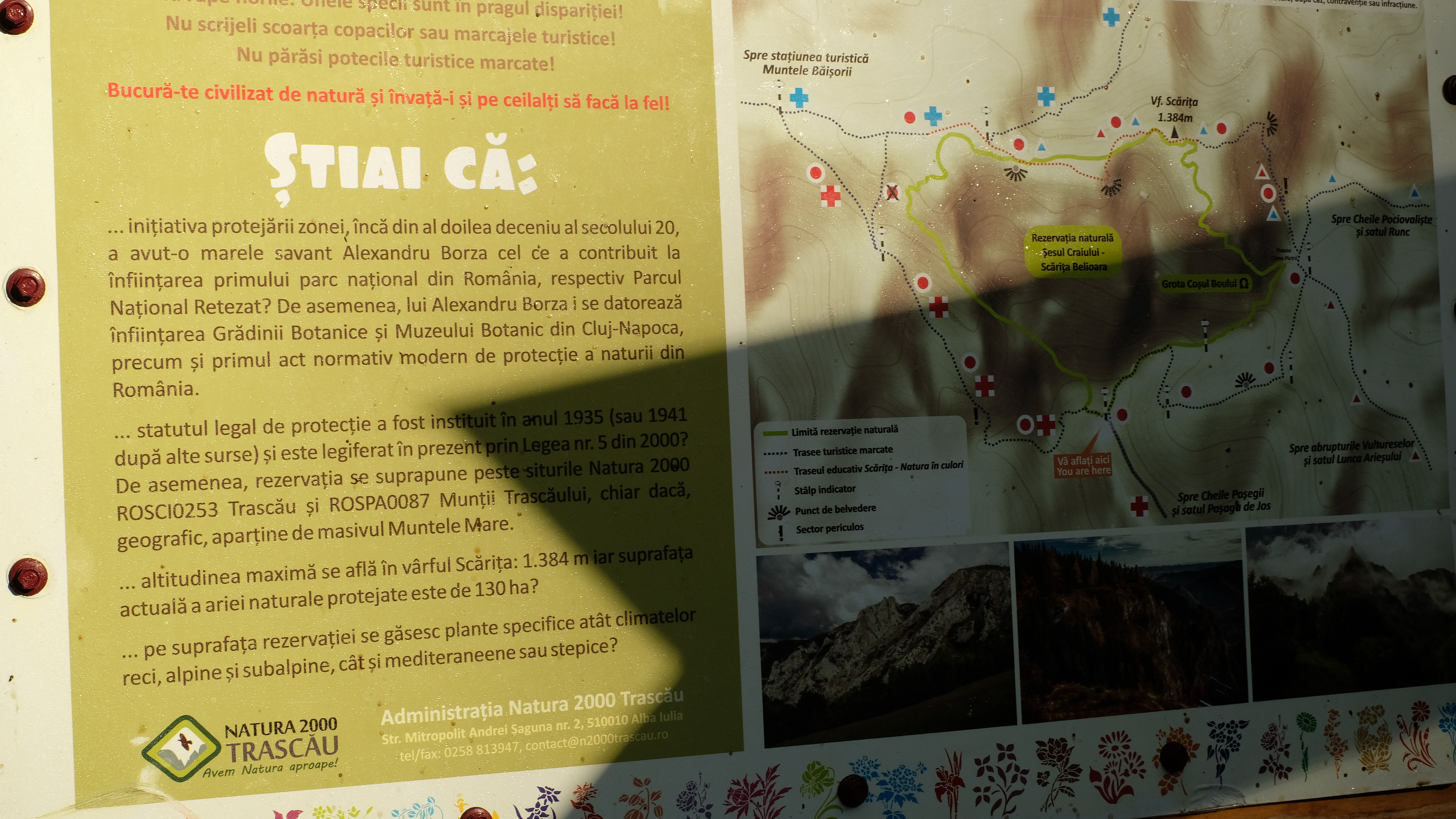 I have found it very useful to have informational boards named “Natura în culori” ( Nature in colours) placed along the hiking trail which gave me a glimpse of the natural ecosystem happening in this mountain. Beautiful animals, flowers , rocks, are part of the magic of the place.