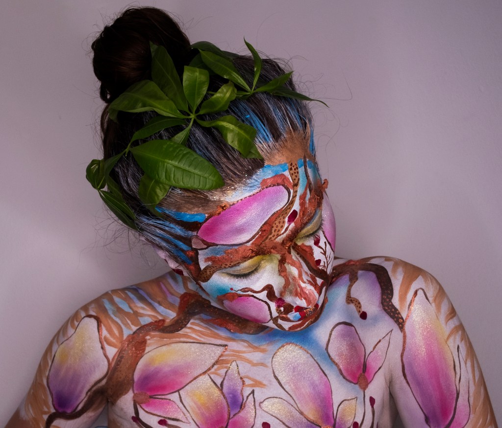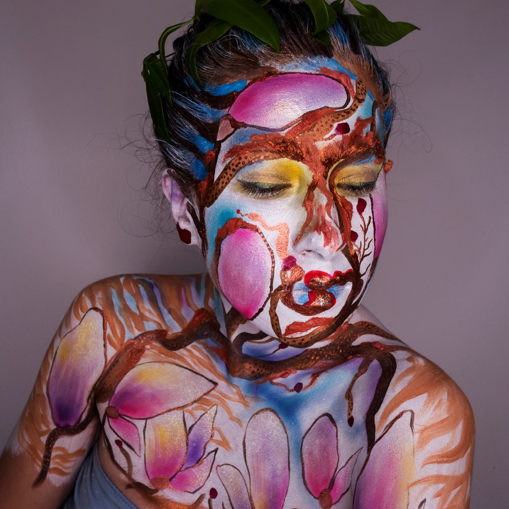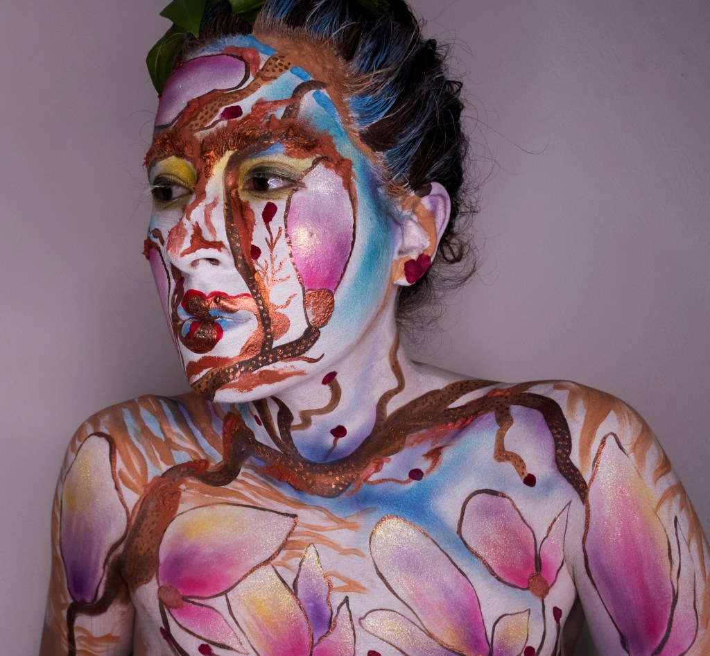 “It’s in his/her nature” is one expression that you might have encountered pretty often. I thought about what does it mean to accept my own nature when I started to paint myself for this project. In the springtime the magnolia tree is blooming and I must say that I always look in awe at its beauty. I felt inspired to do a bodypainting after multiple escapes in nature.