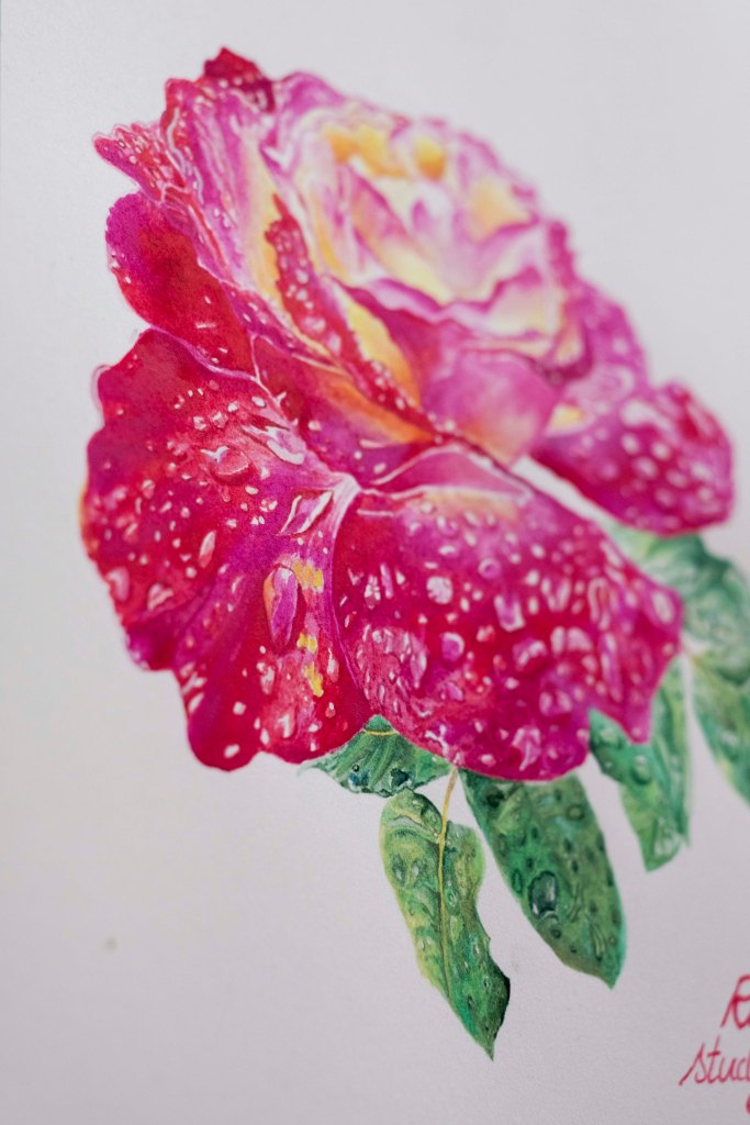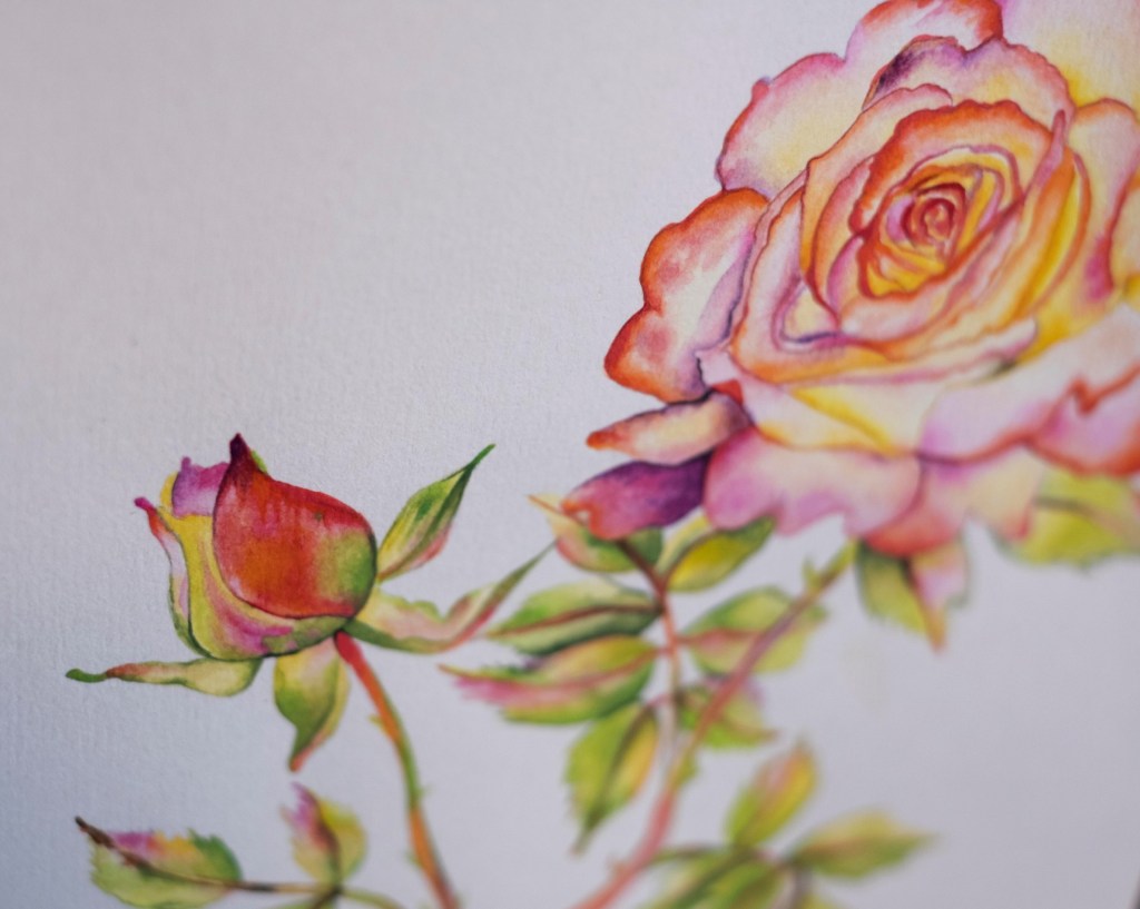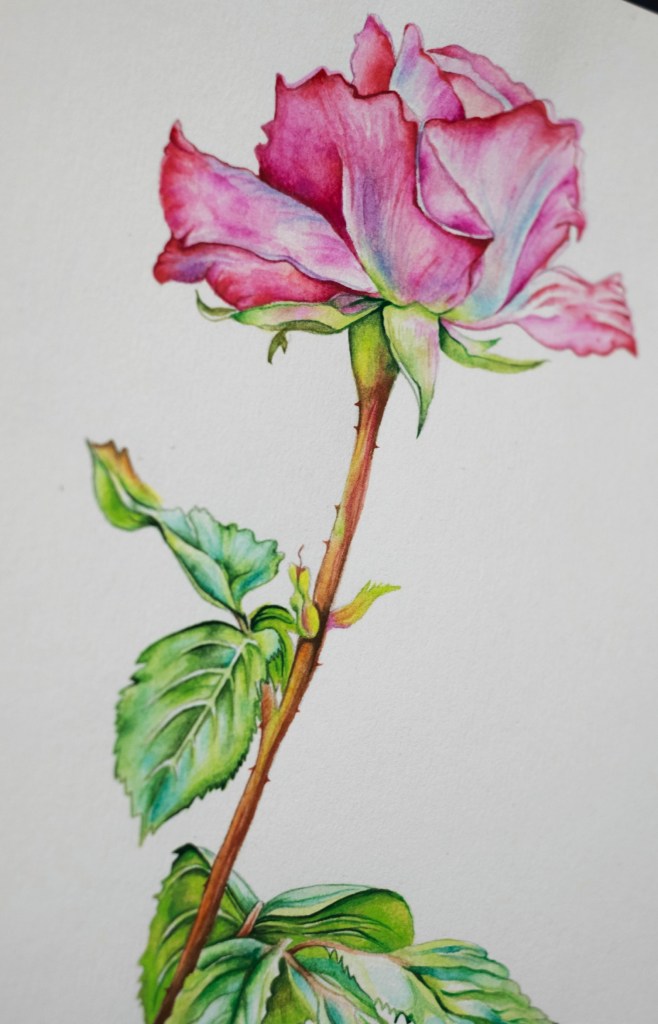 This is my work with watercolour when I explored floral study. I wanted to dip my toes into this part of the art and had fun with painting roses, leaves and everything nature-inspired around me.