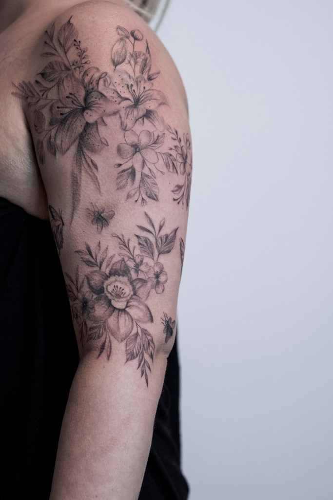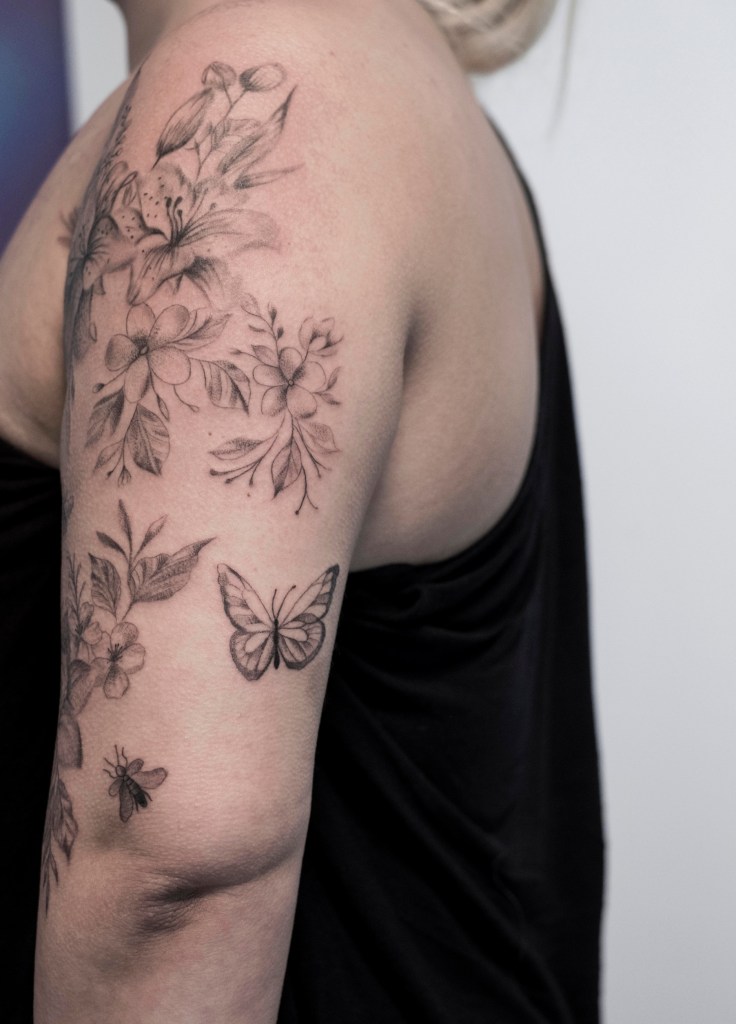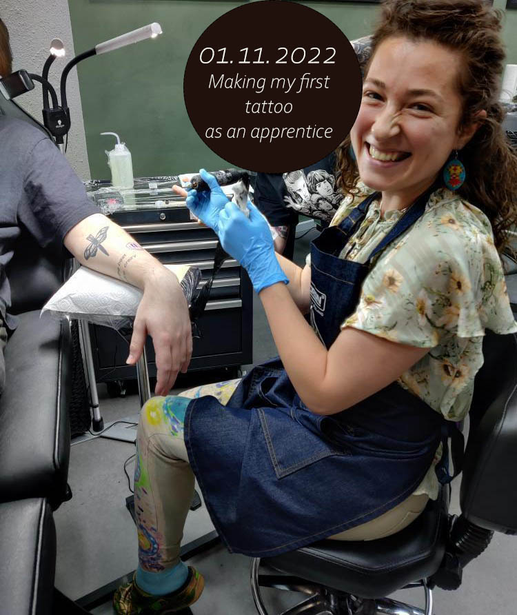 If God gave me the talent to paint I wondered how it would be to use it on real skin. I remember being a child and watching LA Ink on TV and dreaming myself to become a next Kat von D. It seems that we never forget our childhood dreams and it was through divine intervention that in 2022 I ended up pursuing a tattoo apprenticeship in Denmark. On 1st of November I tattoed the very first (alive) client. I will never forget that moment. Painting on paper is a moment with my imagination. Painting on my skin is a moment with my inner child. Painting with a tattoo machine on real skin is a moment with another soul .